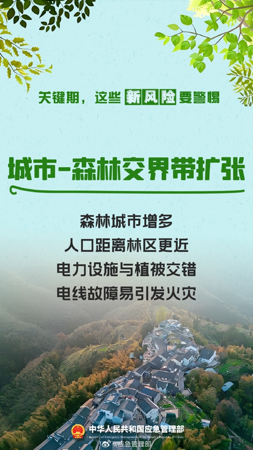 陽春三月,春意盎然。春季氣溫逐漸升高,降水偏少,大風(fēng)天氣增多。伴隨春耕生產(chǎn)、踏青祭祀等生產(chǎn)生活用火增多,森林火災(zāi)風(fēng)險增高。近期,多地陸續(xù)進(jìn)入春季森林防火關(guān)鍵期,以下新風(fēng)險要警惕!