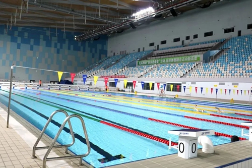 來到奧體中心游泳館