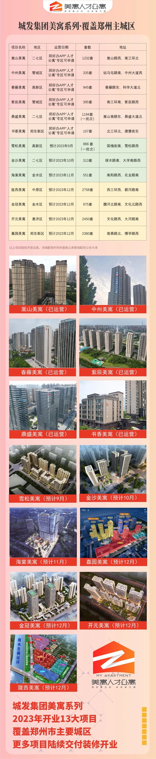 7月31日,鄭州市第四批人才公寓在鄭好辦APP進(jìn)行配租,一共有1301間公寓進(jìn)行配租。目前,鄭州城發(fā)美寓一共有6個(gè)項(xiàng)目,超過4200間人才公寓投入使用,覆蓋人群達(dá)到5000人。這是鄭州城市發(fā)展集團(tuán)真心“引進(jìn)來”和“留得住”人才搭建優(yōu)質(zhì)服務(wù)平臺(tái),打造國(guó)內(nèi)一流的智慧城市綜合開發(fā)運(yùn)營(yíng)商的又一利好消息。