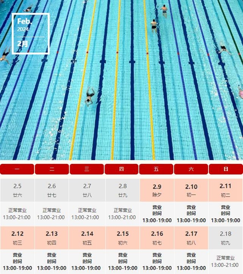 游泳館春節(jié)假期營業(yè)時(shí)間: