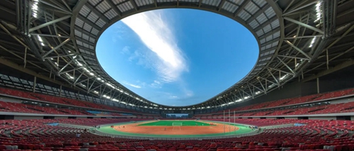 鄭州奧體中心體育場采用了“三角形巨型桁架+立面桁架+網(wǎng)架+大開口車輻式索承網(wǎng)格”的組合結(jié)構(gòu)體系設(shè)計(jì)。82米跨三角形巨型桁架,重量達(dá)1300噸,為同類之最;大開口車輻式索承網(wǎng)格結(jié)構(gòu)為全球最大懸挑,設(shè)計(jì)最大懸挑54.1米,其中,環(huán)向密封拉索直徑為130毫米、單個(gè)索夾重達(dá)6.5噸,均為國內(nèi)之最。項(xiàng)目整體形成的《鄭州奧體中心綜合建造技術(shù)》,成果總體達(dá)到國際先進(jìn)水平。