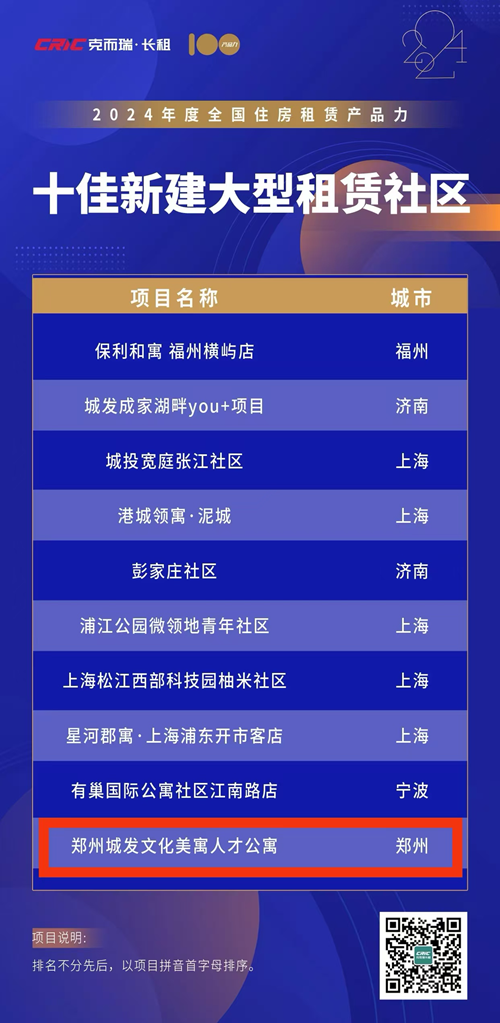 近日,克而瑞2024年度中國住房租賃產(chǎn)品力榜單揭曉,鄭州城發(fā)文化美寓人才公寓憑借卓越的綜合產(chǎn)品力,榮獲“十佳新建大型租賃社區(qū)”稱號。這一榮譽(yù)不僅是對鄭州城發(fā)美寓人才公寓項目的高度認(rèn)可,更是對其在住房租賃領(lǐng)域創(chuàng)新實踐的肯定。
