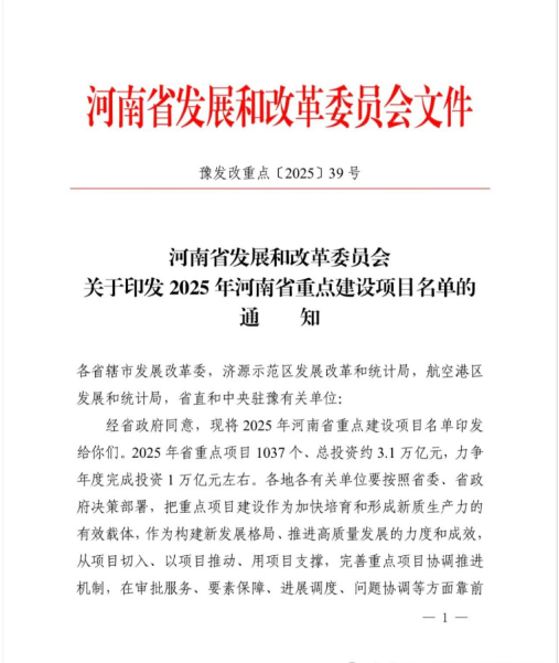 1月20日,河南省發(fā)改委發(fā)布《2025年河南省重點建設項目名單》。城發(fā)·高新生物經(jīng)濟產(chǎn)業(yè)園名列其中,入選2025年河南省重點建設項目。2025年省重點項目1037個、總投資約3.1萬億元,力爭年度完成投資1萬億元左右。
