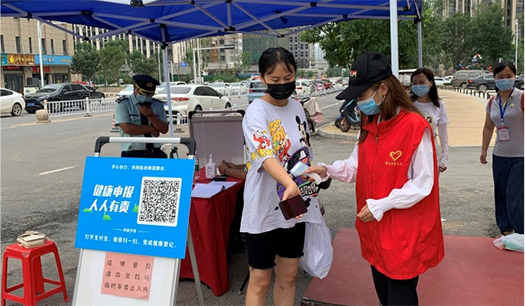 疫情防控刻不容緩。志愿者們首先仔細(xì)詢問了社區(qū)值守人員防疫工作流程及細(xì)節(jié),認(rèn)真記錄社區(qū)防疫的步驟和相關(guān)要求。志愿者們配合社區(qū)工作人員提醒大家正確佩戴口罩,對進(jìn)出社區(qū)人員進(jìn)行健康掃碼和體溫測量,一個個忙碌的身影為社區(qū)抗疫一線筑牢“防護(hù)墻”。