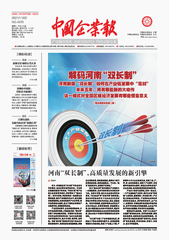 《中國企業(yè)報》于1988年1月正式創(chuàng)刊,由陳云同志題寫報頭。由中國企業(yè)聯(lián)合會、中國企業(yè)家協(xié)會主管主辦,是中國唯一以企業(yè)和企業(yè)家為報道核心的中央級媒體,是國務(wù)院國資委系統(tǒng)最重要的宣傳媒體和新聞信息平臺。《中國企業(yè)報》國內(nèi)外公開發(fā)行,同時贈閱全國人大、全國政協(xié)、中央國家機關(guān)、國資委系統(tǒng)以及世界企業(yè)500強、中國企業(yè)500強和中企聯(lián)會員單位,其覆蓋面廣、影響力大、專業(yè)性強,在中國企業(yè)報道媒體中具有重要地位。